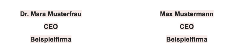Wenn Du in Deiner E-Mail einen 2 Spaltigen Text machen willst, dann erstelle einen Abschnitt im Mailing vom Typ HTML und nutze dieses HTML-Snippet. Es funktioniert auch wenn Du es in die Standard-Mailtexte einfügst: