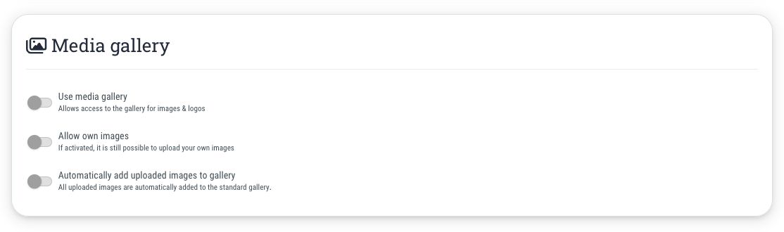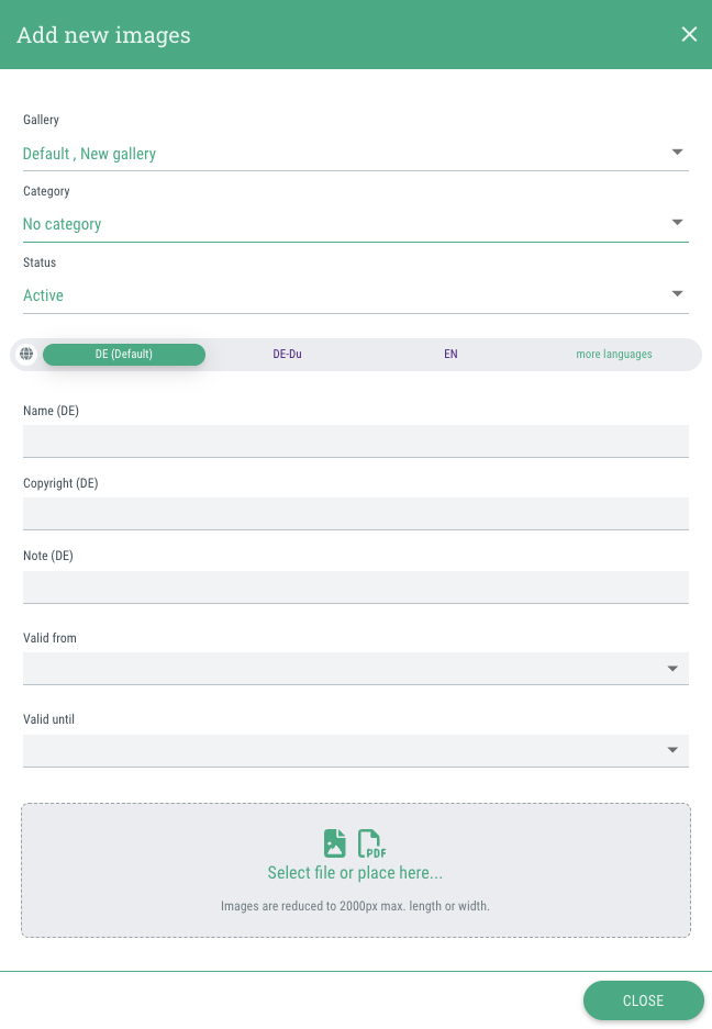 Here you can store company logos and your own images or stock photos for which you have the appropriate usage rights. You can store the copyright and validity of the usage rights directly with the image when you upload it.