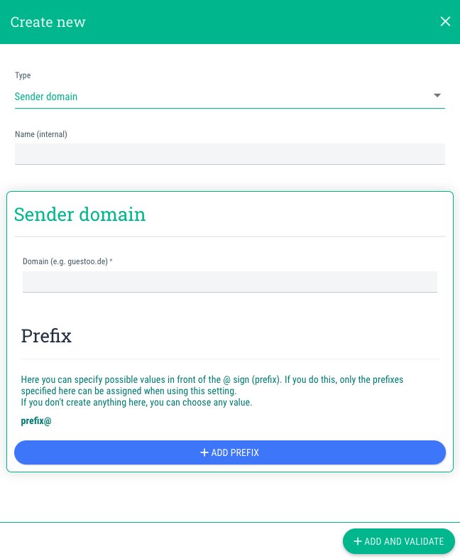 Once the SMTP account has been created, you can store the access data with guestoo and activate the domain for use.